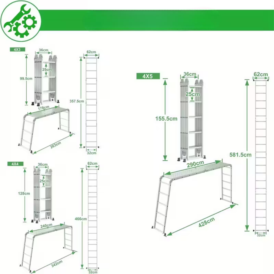 Our ladder systems feature intuitive transformation mechanisms that require minimal effort. The locking hinges move smoothly between positions while maintaining secure holds in each configuration. You can set up a full scaffold system in under two minutes, then fold it back to compact storage when finished. The 150kg load capacity supports both the user and their tools, eliminating trips up and down for equipment. Work platforms create stable standing areas for tasks that require both hands, from painting to electrical installations. The configurations accommodate tight indoor spaces and open outdoor areas with equal effectiveness.